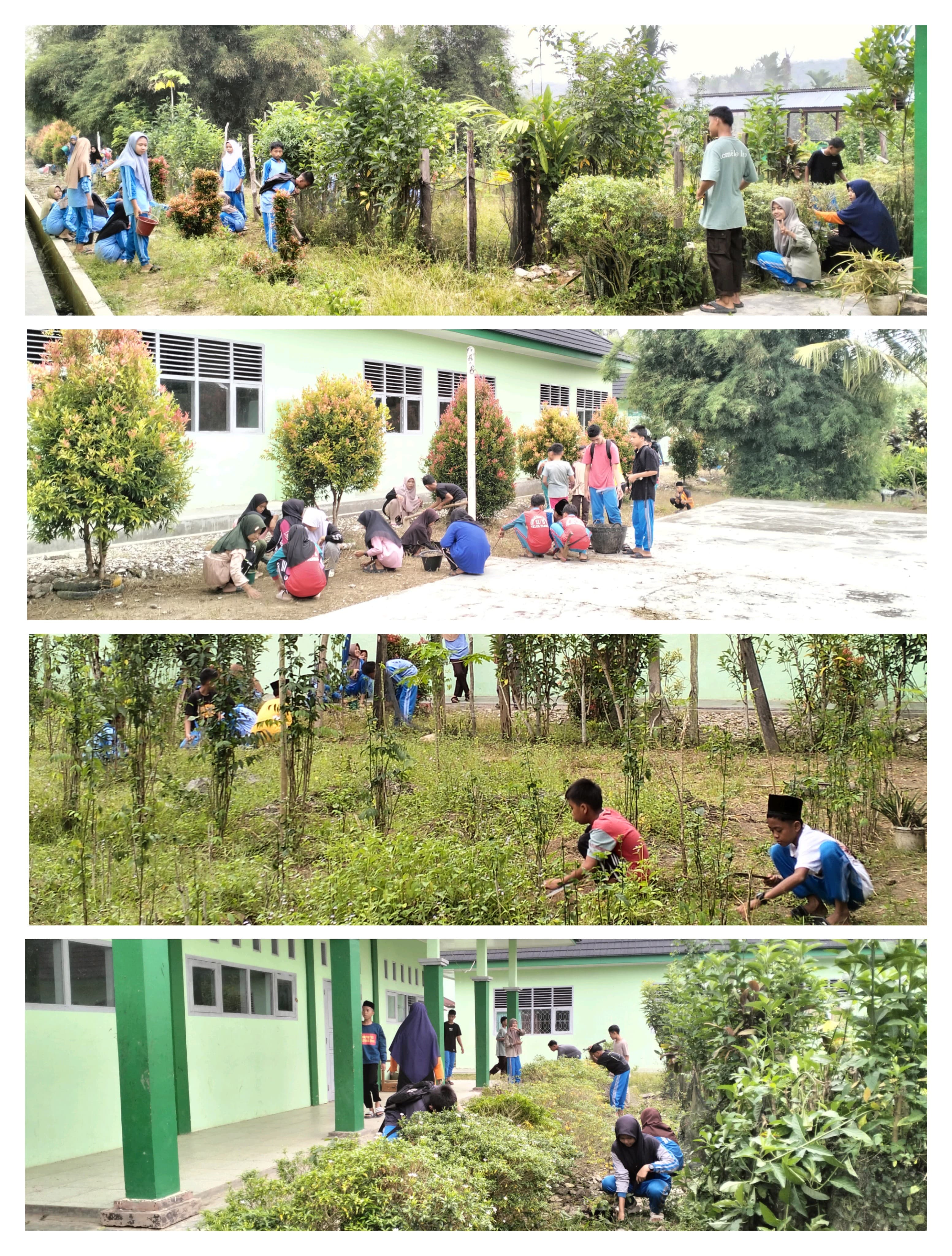 Bungo (MtsN 5 Bungo) - Kerja bakti patut menjadi identitas budaya madrasah karena banyak manfaatnya, diantaranya kebersamaan, kepedulian, dan keserasian. Pekerjaan yang dilakukan dengan kerja bakti akan lebih cepat selesai. Budaya kerja bakti di lingkungan Madrasah Tsanawiyah Negeri 5 Bungo untuk membersihkan lingkungan madrasah sudah diterapkan sejak lama. Sabtu(20/07/2024).